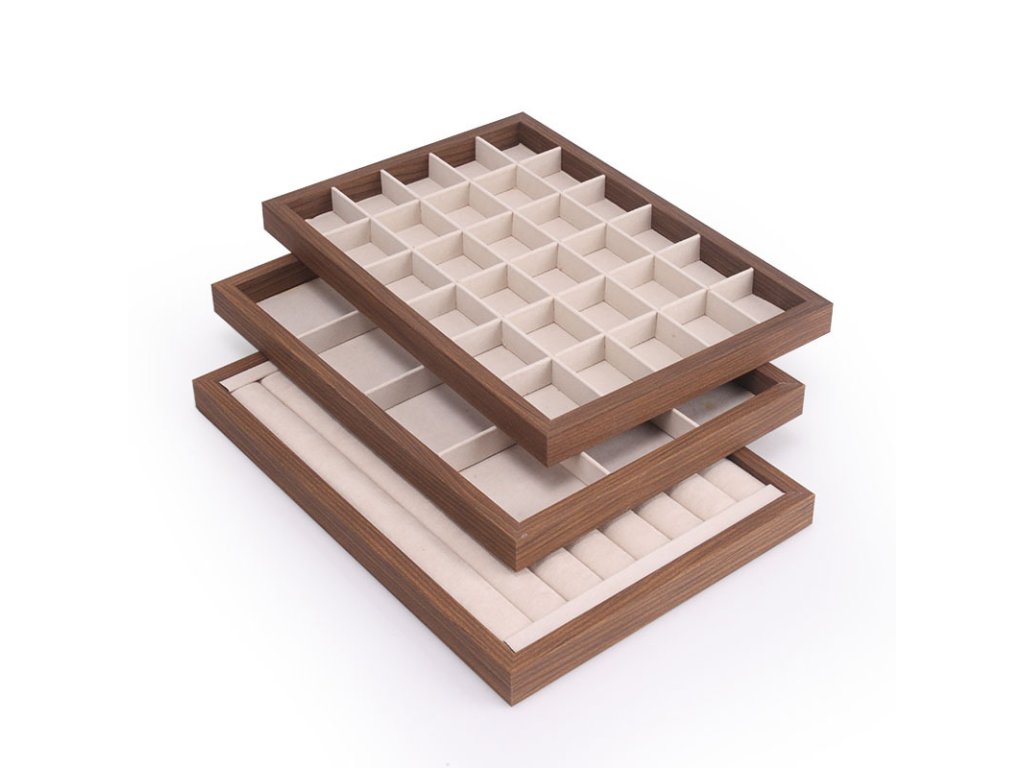 A doboz kiváló minőségű fából készült, precíz kivitelben, és több rekesszel rendelkezik, amelyek lehetővé teszik a kiállítási tárgyak áttekinthető elrendezését. A belső puha párnázás megvédi a ritka darabokat a sérülésektől, és egyúttal növeli esztétikai értéküket.