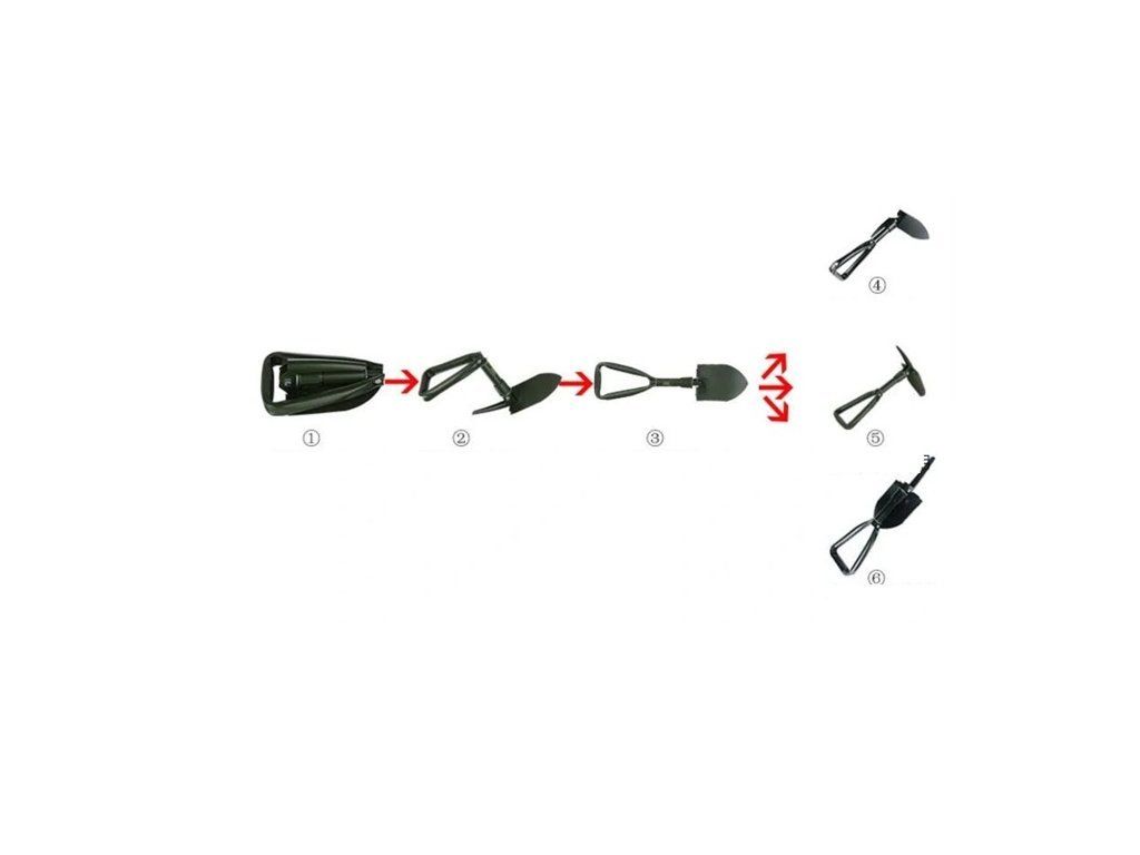 Az összecsukható lapát egy sokoldalú eszköz. Használható lapátként pl. lapátoláshoz, vagy ásáshoz. A lapát-rész ásóval is fel van szerelve, amely lehetővé teszi, hogy gyorsan és egyszerűen lyukakat mélyítsen a talajba pl. sátor vagy rögzítőkötelek elhelyezéséhez.