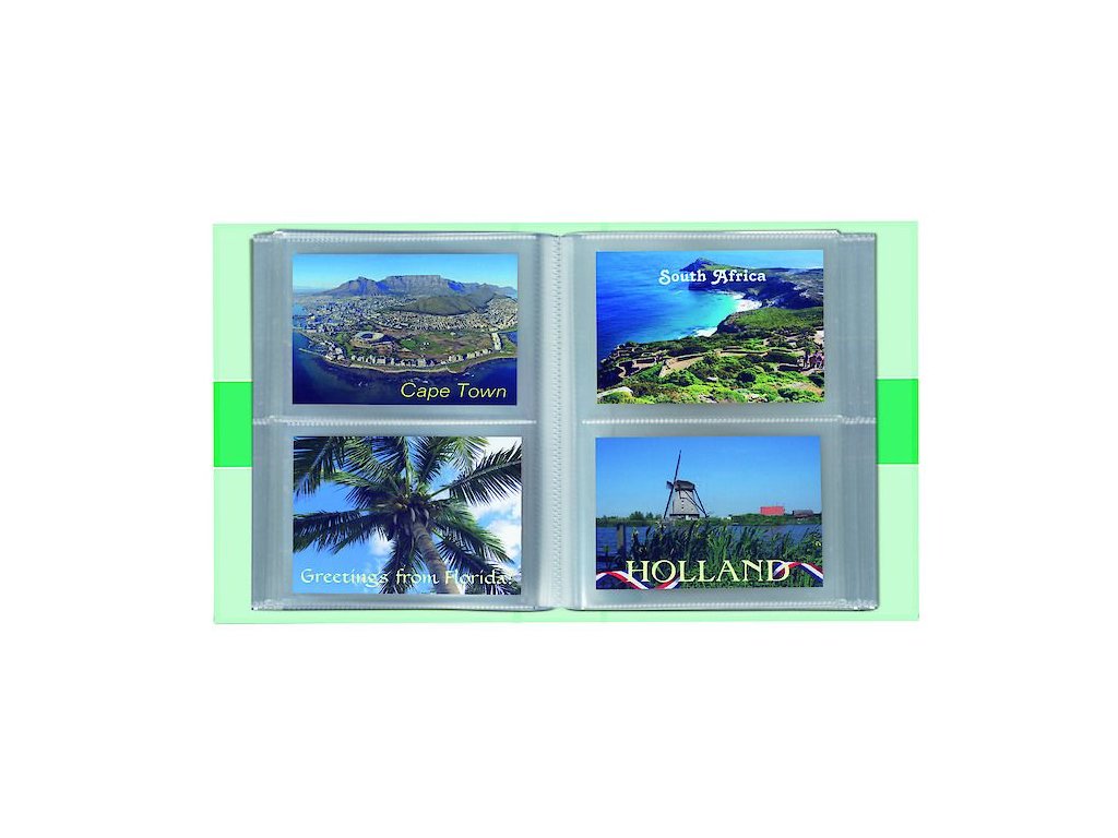 Ez az album összesen 50 beépített fóliát tartalmaz, mindegyik 4 képeslap számára kialakított zsebbel. A fóliák biztonságos tárolást és védelmet nyújtanak a szennyeződésekkel szemben. Átlátszó műanyagból készültek, így a képeslapok mindkét oldala megtekinthető anélkül, hogy ki kellene venni őket az albumból. Az album praktikus és strapabíró, borítója tematikus nyomtatással ellátott és könnyen tisztítható. A POSTCARDS album tökéletes megoldás értékes és egyedi emléktárgyai rendszerezett tárolására.